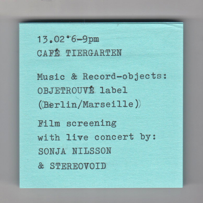An evening of synth music & visual art around OBJETROUVÉ, the Berlin-based label creating limited-edition record-objects at the convergence of sound, sculpture, and design. The evening also features a live concert & film projection by Sonja Nilsson × Stereovoid, accompanying Nilsson's film Starfish (2023): a poetic, unsettling studio-process work exploring creation, fragility, and transformation through sculptural practice. Expect special treats!