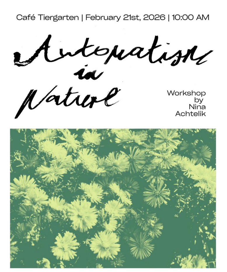 Yellow Salon is a space for conversation and imagination with an invited artist. Through drawing, writing, games, and shared food, we get to know their work in an informal way. The gatherings take place around the large table in the séparée of Café Tiergarten, with views to the garden and nearby park.